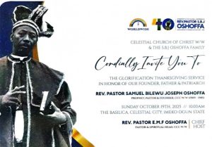 Celestial Church of Christ, Calvary Parish 1, would play host to a vast array of dignitaries, from far and near, at the Unveiling of the 44th Annual Adult Harvest Theme of the Aguda-Ogba, Lagos based parish, on Sunday, 20th October, 2024.