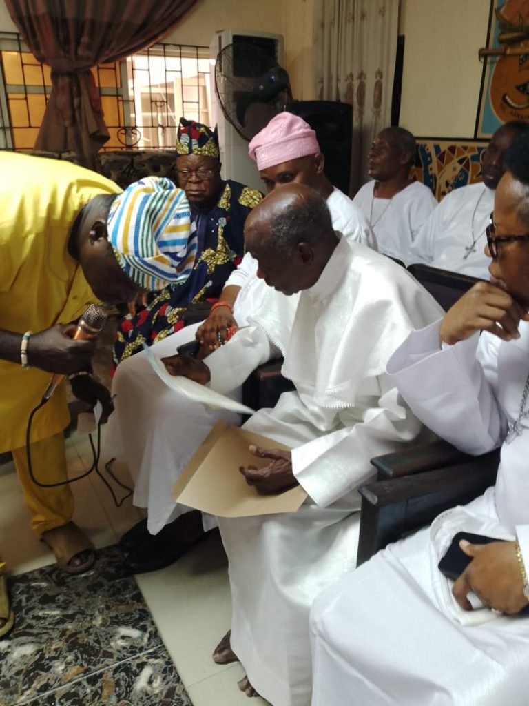 The top echelon of the Celestial Church of Christ, Badagry Region, led by the Regional Head, Assistant Most Superior Evangelist Olusiji Olajide, visited the Palace of the late Oba Akran of Badagry, Aholu Menu Toyi 1, who recently passed on at the age of 89, on a condolence mission.