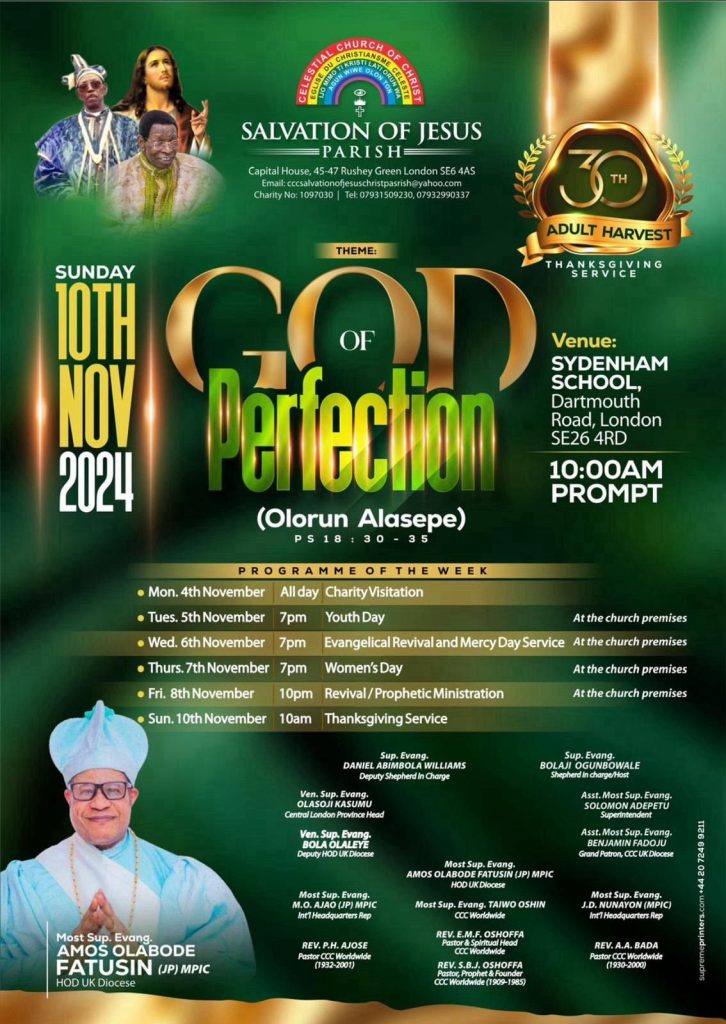 C.C.C. SALVATION OF JESUS PARISH, LONDON, UK, HOLDS ANNUAL ADULT HARVEST TODAY (10th November, 2024)