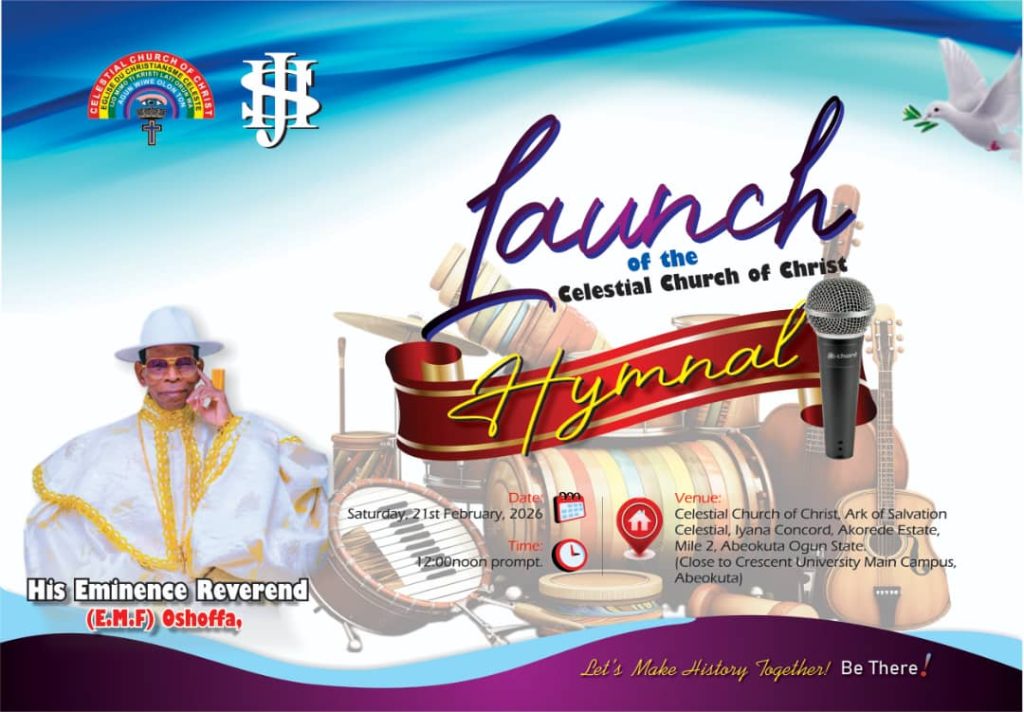 The hymnal launch slated for 12:00pm on Saturday 21st February, is expected to attract church leaders, clergy, choirs, media representatives, and Celestians from across Nigeria and beyond.