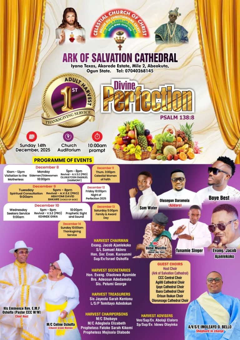 1 Harvest Thanksgiving IT’S “DIVINE PERFECTION” AT C.C.C. ARK OF SALVATION CATHEDRAL, ABEOKUTA November 15, 2025 by Kayode Ajala
