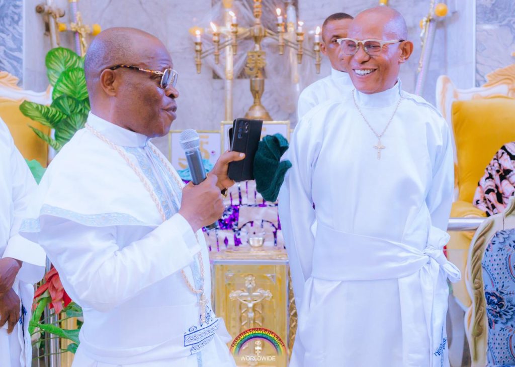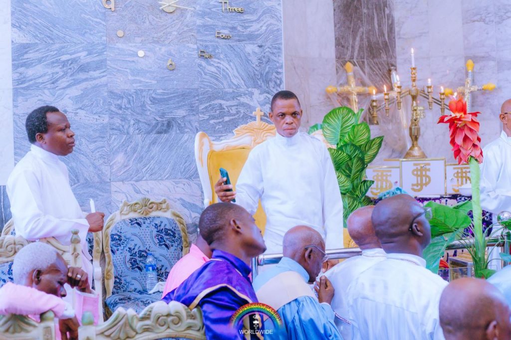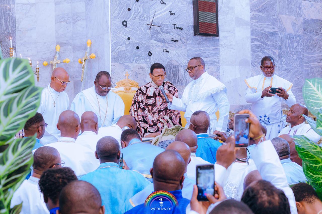 IN ATTENDANCE: His Eminence, Reverend E.M.F Oshoffa, Mother Celestial Celine Oshoffa, Most Superior Evangelist M.O. Ajao, Assistant Most Superior Evangelist S.F Adeniyi, Assistant Venerable Superior Evangelist Gouan Barthelemy, Assistant Venerable Superior Evangelist Peter Onwodi, et al.