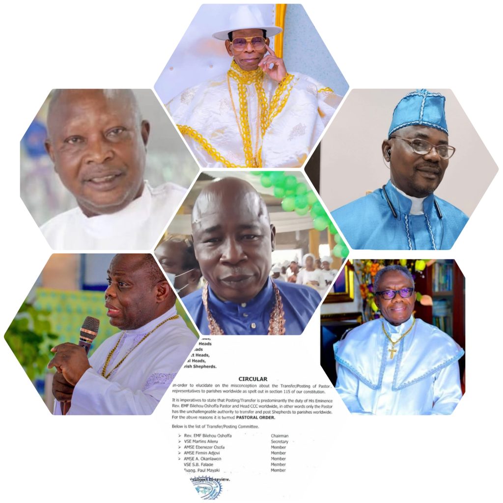 In an internal memo with reference number CCC/EMF/PO/PD/CIR-05/11-25, dated 3rd November 2025, and addressed to all Diocese Heads, Regional Heads, Area Heads, District Heads, Zonal Heads and Shepherds, His Eminence, Reverend E.M.F Oshoffa (Pastor and Spiritual Head, C.C.C Worldwide), has announced the composition of a 7-Member Posting and Transfer Committee for the Celestial Church of Christ Worldwide.