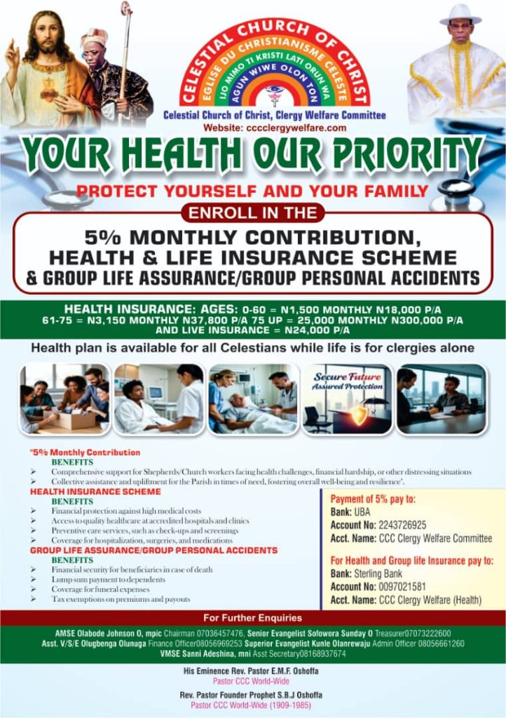 The Clergy Welfare Committee of the Celestial Church of Christ Worldwide hereby reminds all those who are concerned to ensure that, as they come for the 2026 Anointment Exercise, they must be prepared to present evidence of the 5% Welfare Deductions from their parishes.