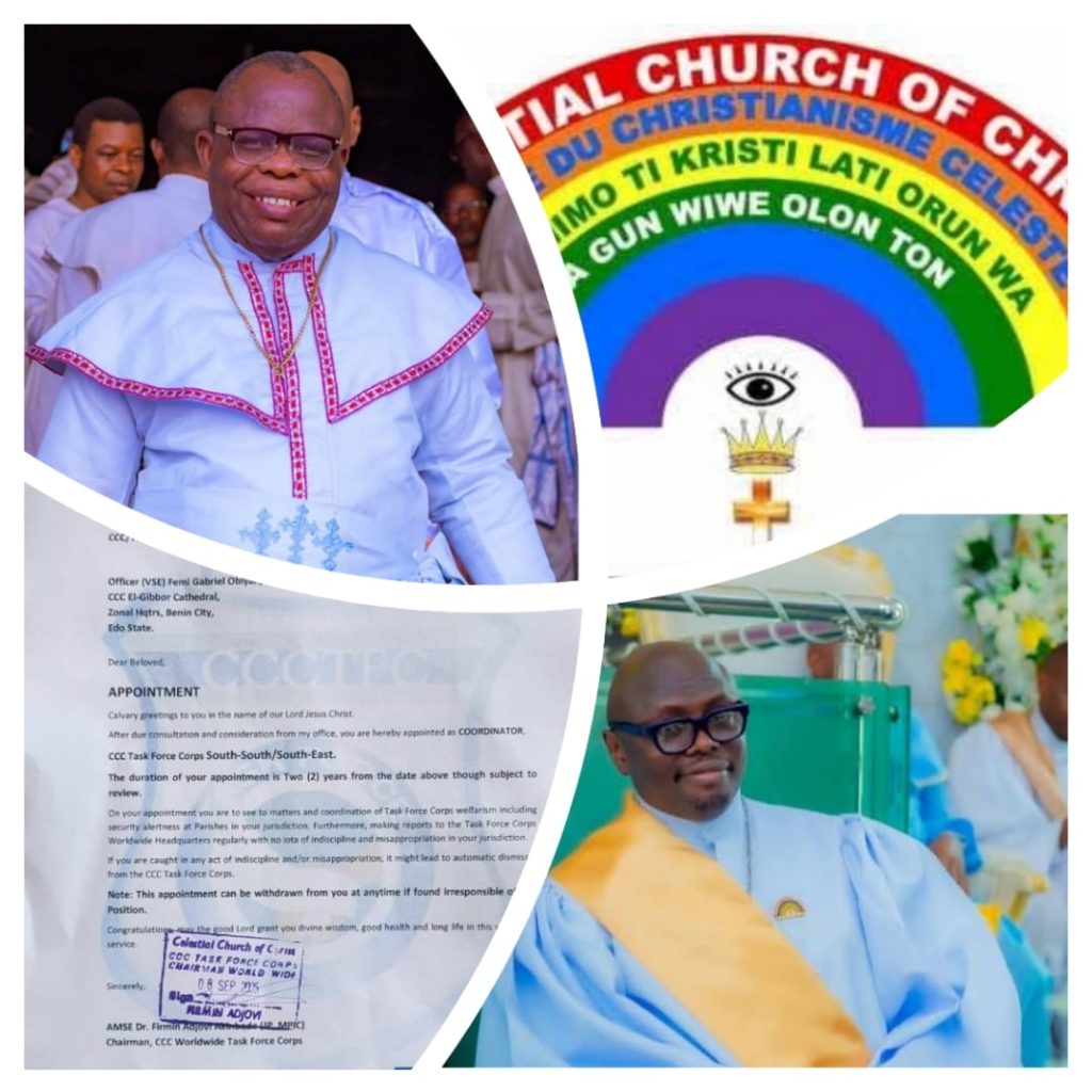 This is to announce that the Shepherd in Charge of the Celestial Church of Christ, El-Gibbor Parish, Benin, Edo State, Venerable Superior Evangelist Femi Eromosele Gabriel Obiyan, has been appointed as the C.C.C. Task Force Corps Coordinator for South-South and South-East, Nigeria.